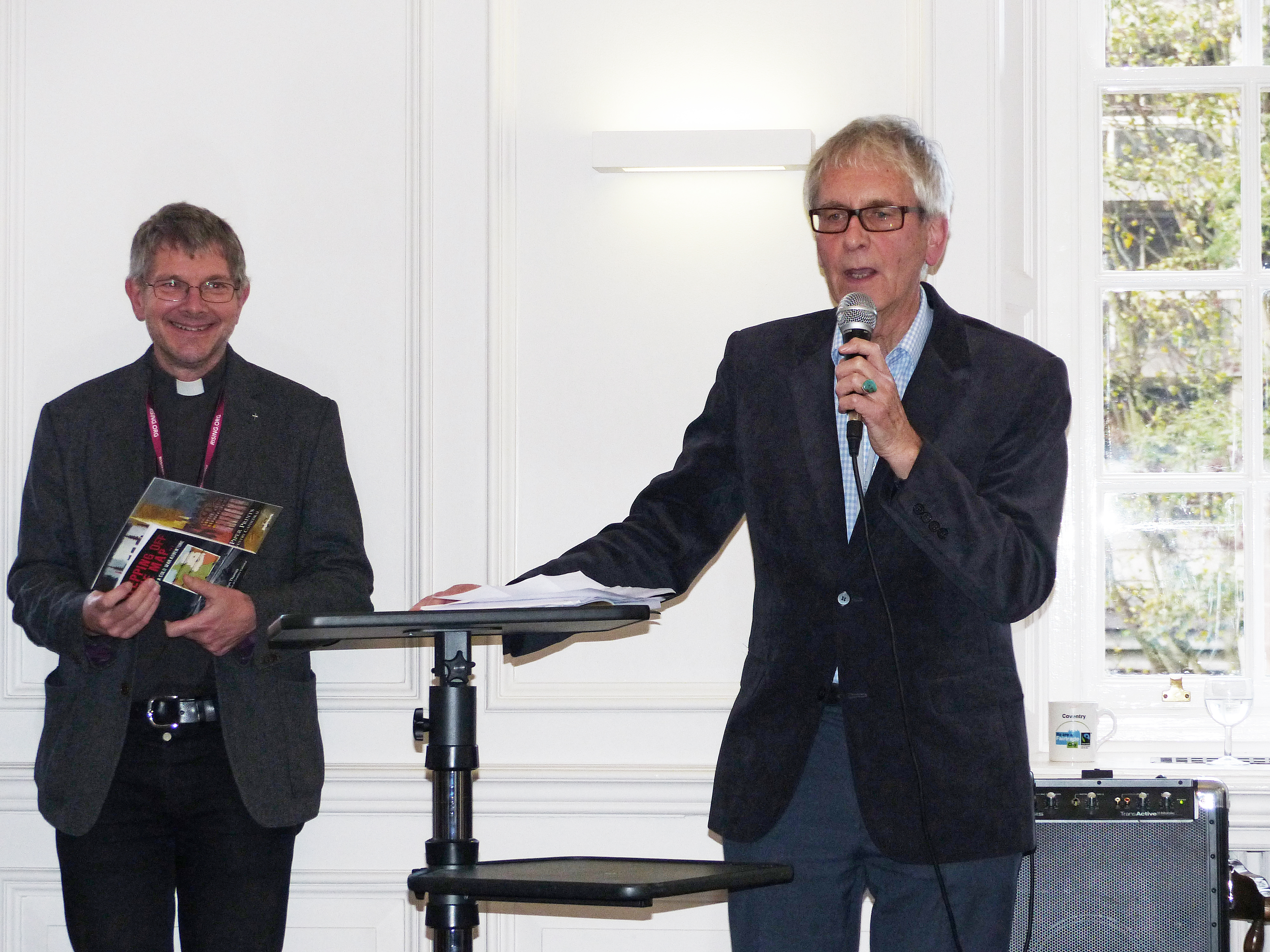 Ian Bruce, one of the contributors to Stepping Off the Map, welcomes guests at the Coventry launch. November 22, 2015November 24, 2015 4000 × 3000 Coventry, Ian Bruce with Dean (left) Coventry Like Loading...